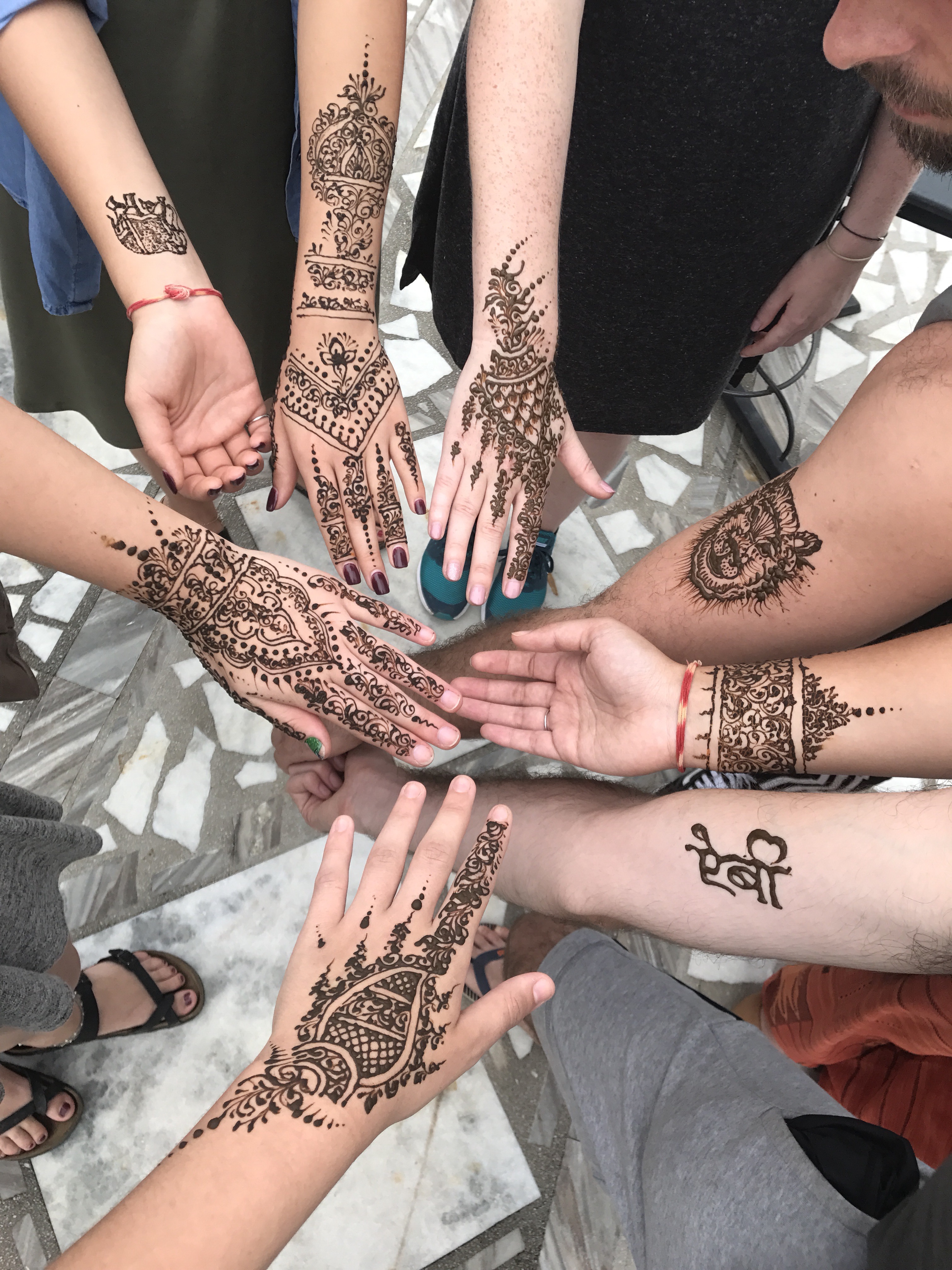 After a short introduction to his works we were offered the opportunity to get our hennas done. Abbie went for a complex wrist and hand piece and I had Abbie’s name written in Hindi on my arm. These cost us around 250INR (£2.80) which is a pretty good price.